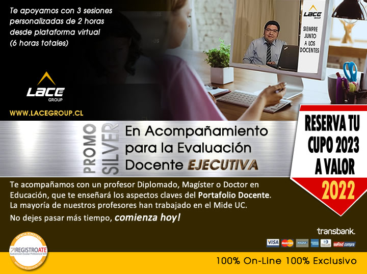 Acompañamiento para la Evaluación Docente "EJECUTIVA" Silver es una asesoría de acompañamiento presencial virtual que puede ser realizada por las plataformas virtuales a su elección como por ejemplo Webex, Zoom, Google Meet, Skype, etc., que contempla 6 horas cronológicas para dejar su portafolio elaborado, para ello, puede asignar 2 módulos de 3 horas o 3 módulos de trabajo de 2 horas en horario a convenir.